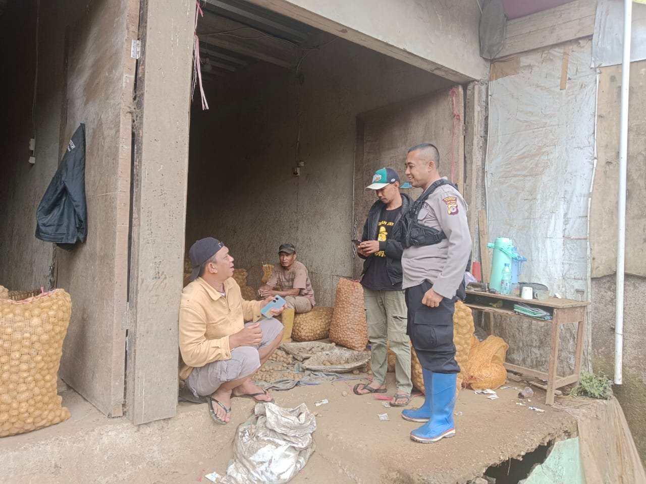 Personil Polsek Kertasari Polresta Bandung Aipda Irawan, melaksanakan kegiatan sambang warga sekaligus silaturahmi ke jongko pedagang sayuran kentang yang berada di Jalan Raya Neglasari – Cibeureum, wilayah hukum Polsek Kertasari.