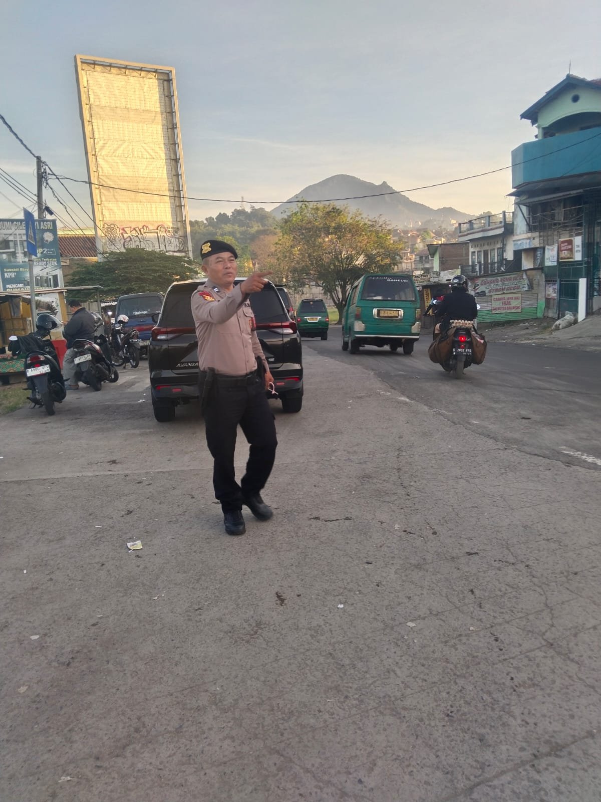 Personil Unit Samapta Polsek Cileunyi Turun ke Jalan, Urai Kepadatan Pagi di Depan Pasar Sehat