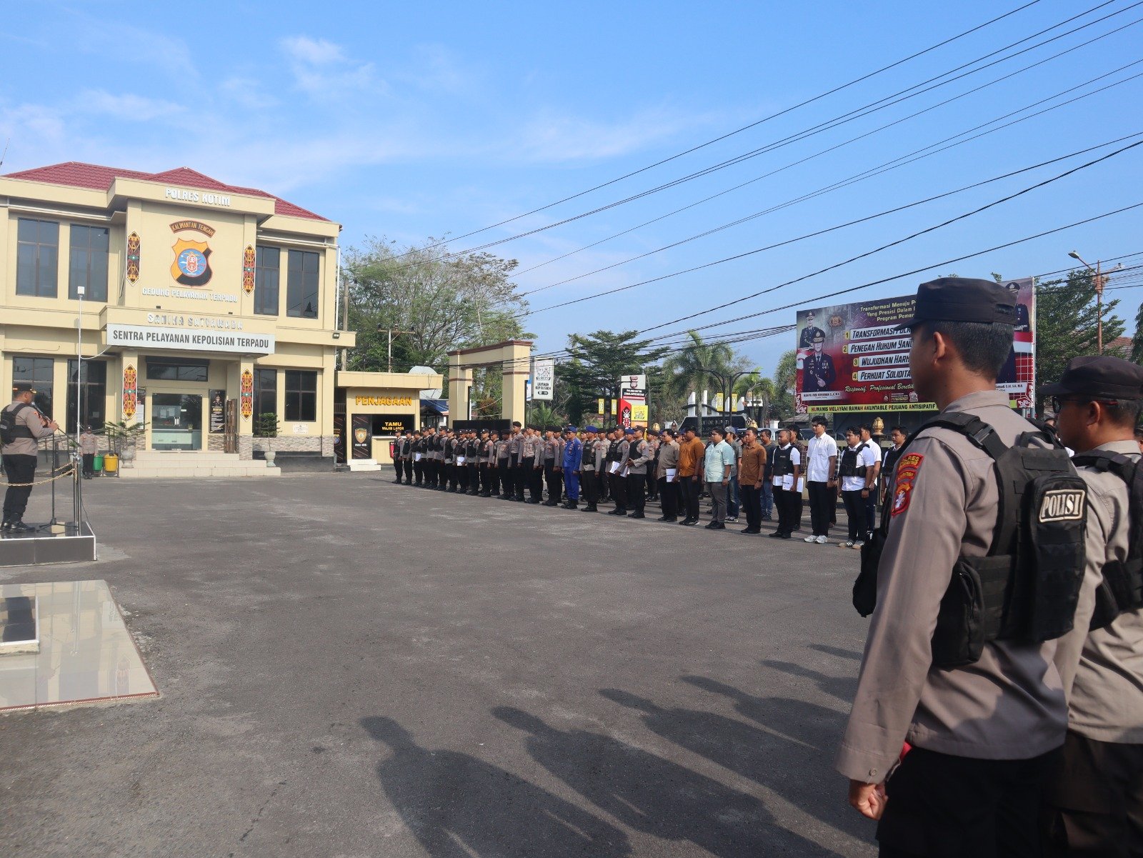 Sampit, Mata-peristiwa.id – Polres Kotawaringin Timur (Kotim) melaksanakan apel pengecekan pasukan dalam rangka pengamanan demonstrasi (demo) oleh Aliansi Koperasi Masyarakat Kotim Bersatu di depan Kantor Bupati Kotim. Apel pengecekan pasukan ini dipimpin oleh Kapolres Kotim AKBP Resky Maulana Zulkarnain S.H.S.l.K.M.H. melalui Kabag Ops Polres Kotim Kompol Marsono, S.H., M.M., selaku perwira pengendali, yang berlangsung di halaman Mapolres Kotim pada hari Rabu pagi (24/09/2025)