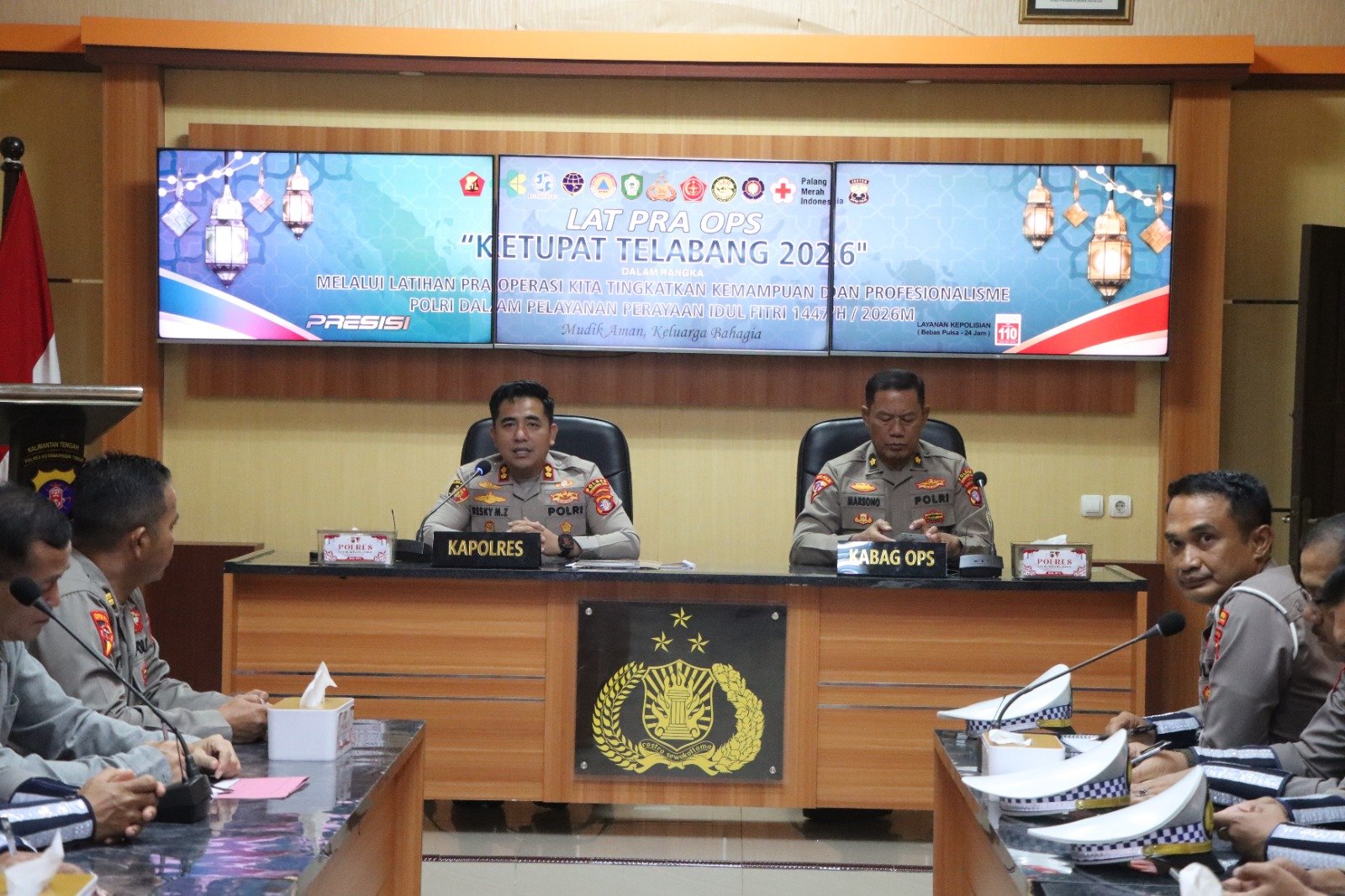 Sampit , Mata-peristiwa.id– Polres Kotim menggelar Lati han Pra Operasi (Lat Pra Ops) Ketupat Telabang 2026, di Aula Lobby Polres Kotim, Kegiatan ini dipimpin langsung oleh Kapolres Kotim AKBP Resky Maulana Zulkarnain, S.H.,S.l.K.,M.H. didampingi oleh Kabag Ops Kompol Marsono, S.H.,M.M. dan dihadiri oleh para Kasatgas, Kapolsek dalam kota, Kapolsek Jajaran (Via Daring), serta personel Polres Kotim yang terlibat, pada hari Rabu pagi (11/03/2026).