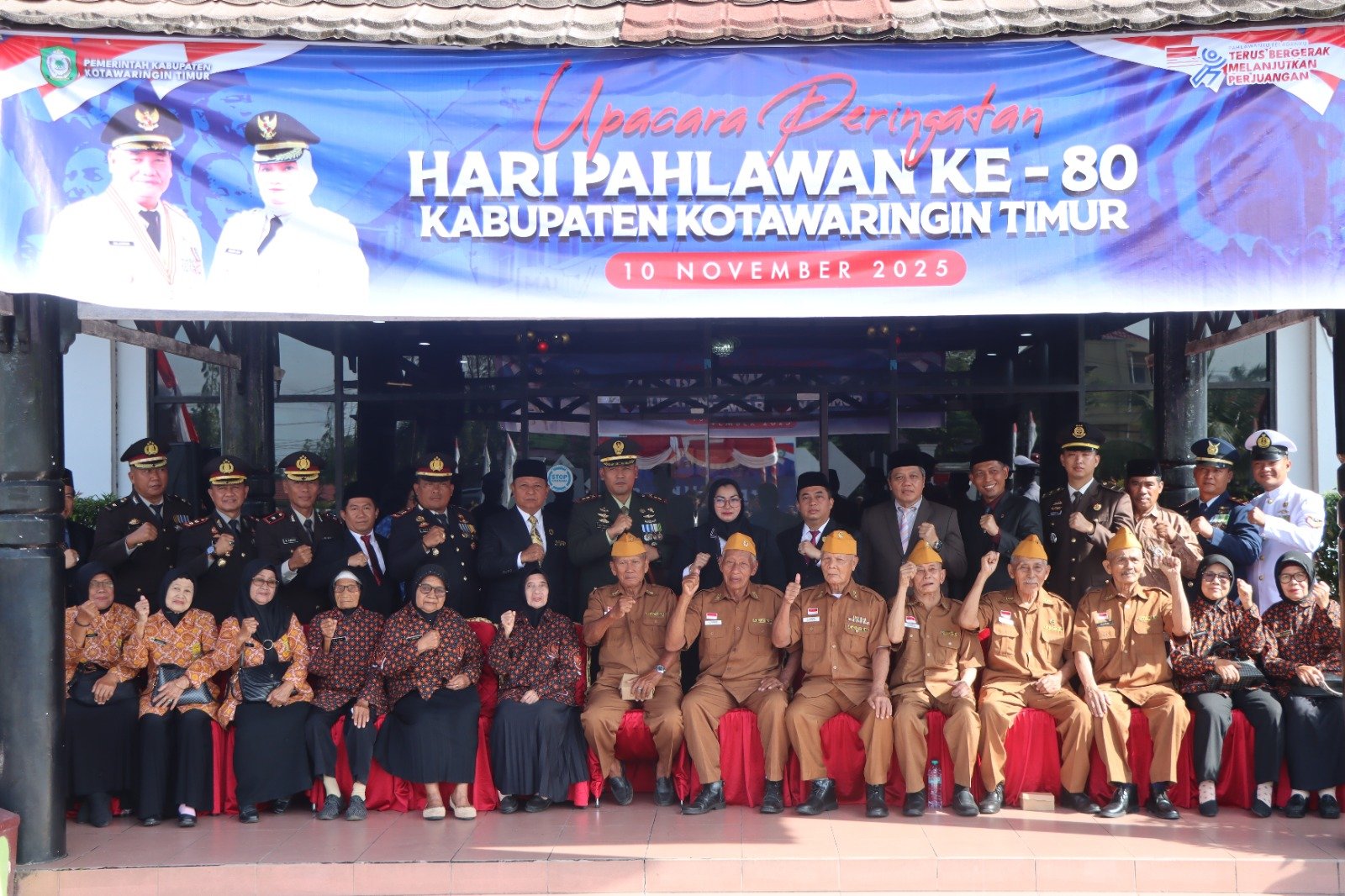 Sampit, Mata-peristiwa.id- Polres Kotim menghadiri upacara peringatan Hari Pahlawan di halaman Pemda Kab. Kotim dengan tema “Pahlawanku Tauladanku Terus Bergerak Melanjutkan Perjuangan”. Upacara ini dipimpin oleh Komandan Kodim 1015 Sampit, Letkol Inf Dwi Candra Setyawan, dan dihadiri oleh Kasat Binmas Kompol Martin Kamidi mewakili Kapolres Kotim, pada hari Senin pagi (10/11/2025).