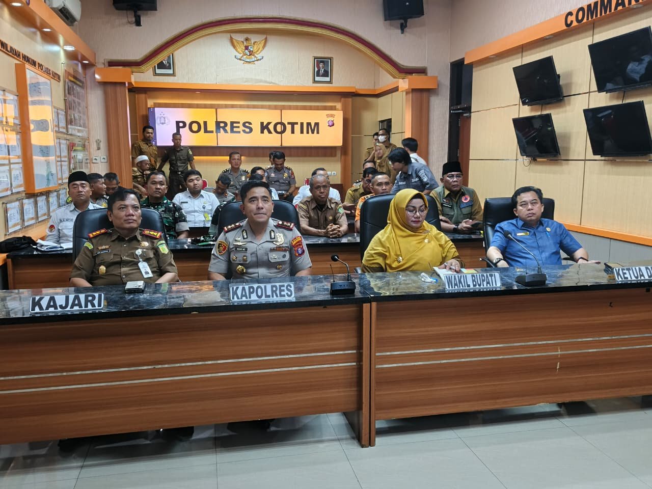 Sampit, Mata-peristiwa.id – Polres Kotim mengikuti Kegiatan Zoom Meeting Rakor Lintas Sektoral Bidang Opsnal Kesiapan Ops Ketupat 2026 yang diselenggarakan oleh Mabes Polri, Kegiatan ini dipimpin oleh Bapak Kapolri Jenderal Polisi Drs. Listyo Sigit Prabowo, M.Si. bersamanya Kementerian terkait dan diikuti Polda dan Polres Jajaran, Polres Kotim mengikuti kegiatan zoom meeting dipimpin Kapolres Kotim AKBP Resky Maulana Zulkarnain, S.H., S.I.K., M.H., didampingi Wakil Bupati Kotim, Ketua DPRD Kotim, Kajari Kotim dan instansi terkait Kab Kotim dan diikuti oleh seluruh PJU Polres Kotim, di Aula depan pada hari senin siang (02/03/2026).