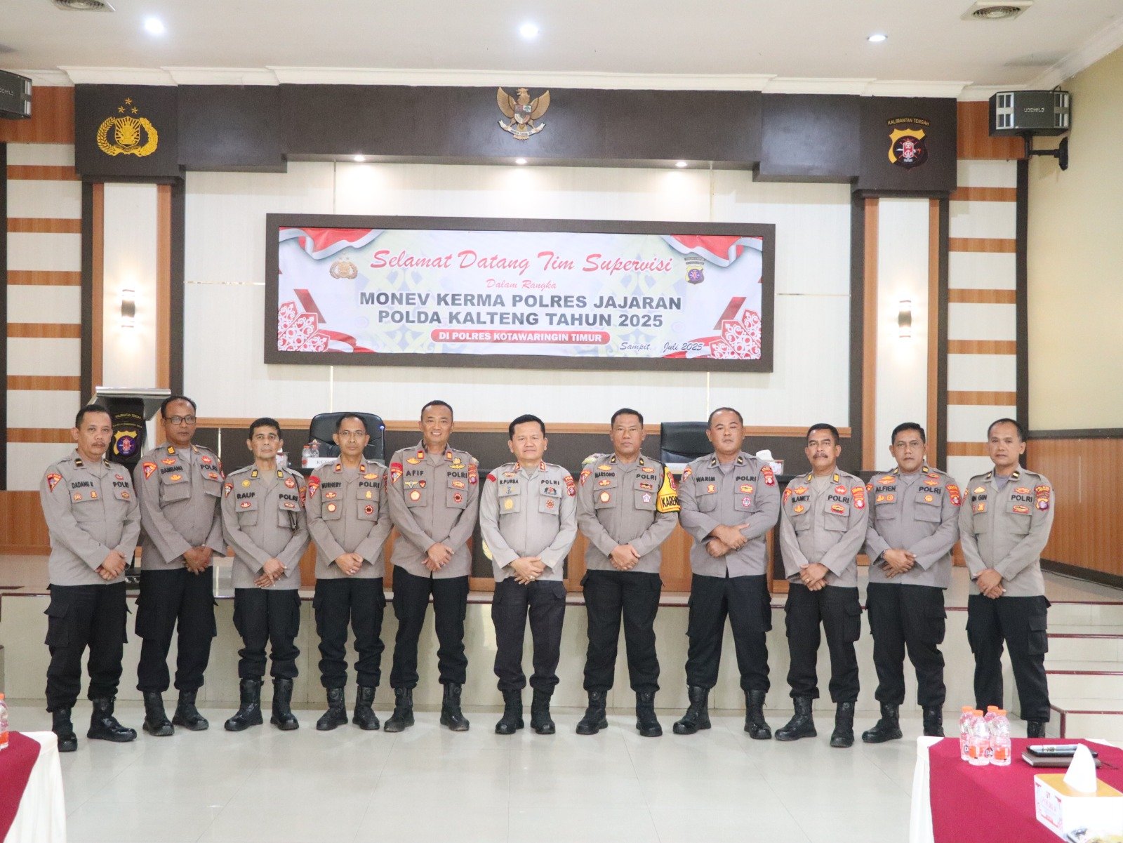 Kotim, Mata-peristiwa.id- Polres Kotim jajaran Polda Kalteng menyambut kunjungan kerja dari Bagkerma Roops Polda Kalteng di Aula Tunggal Penaluan Polres Kotim. Kegiatan ini berlangsung di pagi hari dan bertujuan untuk melakukan supervisi terhadap program kerja yang telah berjalan. Selasa, 22 Juli 2025, Pagi