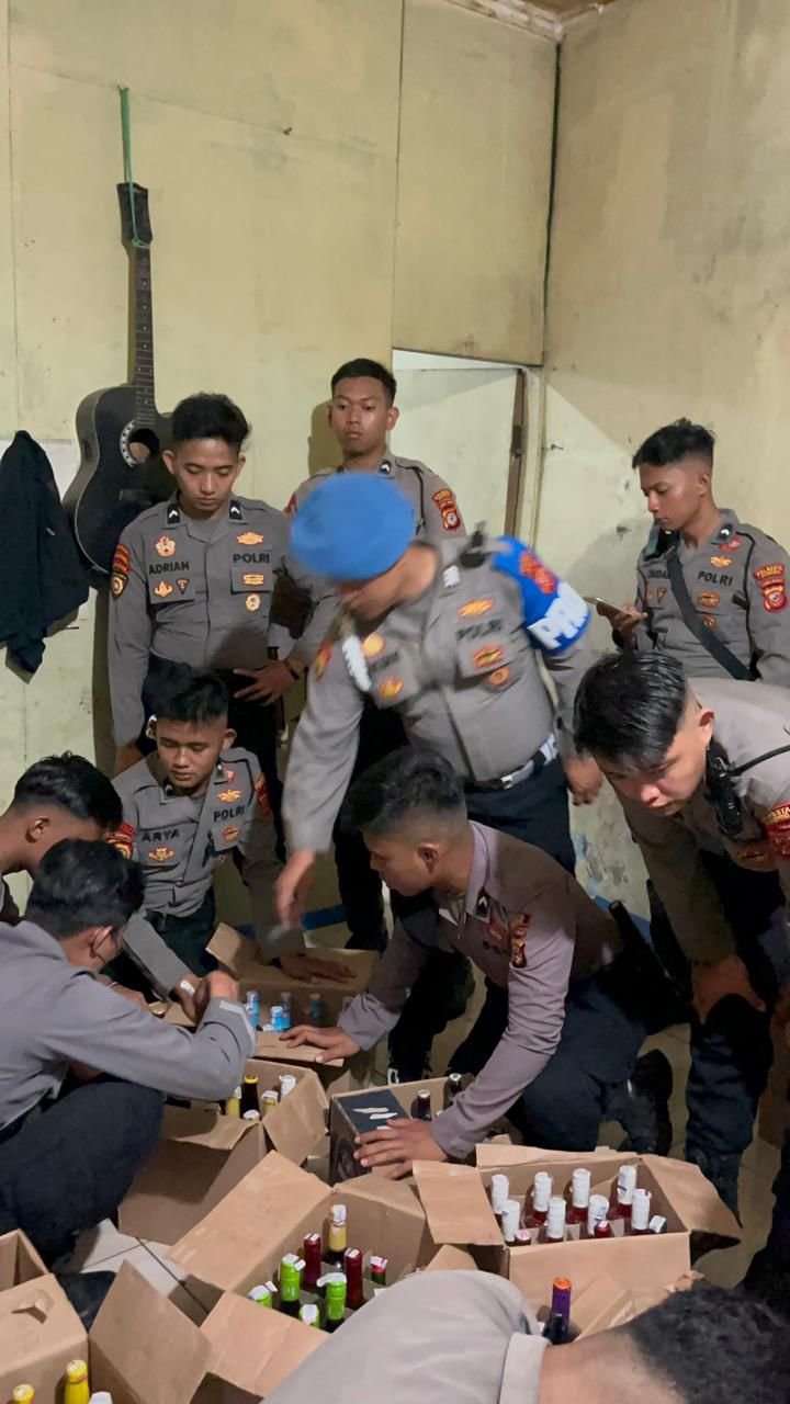 Tim gabungan berhasil menyita barang bukti peredaran minuman keras dalam jumlah besar, meliputi 455 botol miras dari berbagai merek, serta 10 jerigen dan 2 ember tuak.