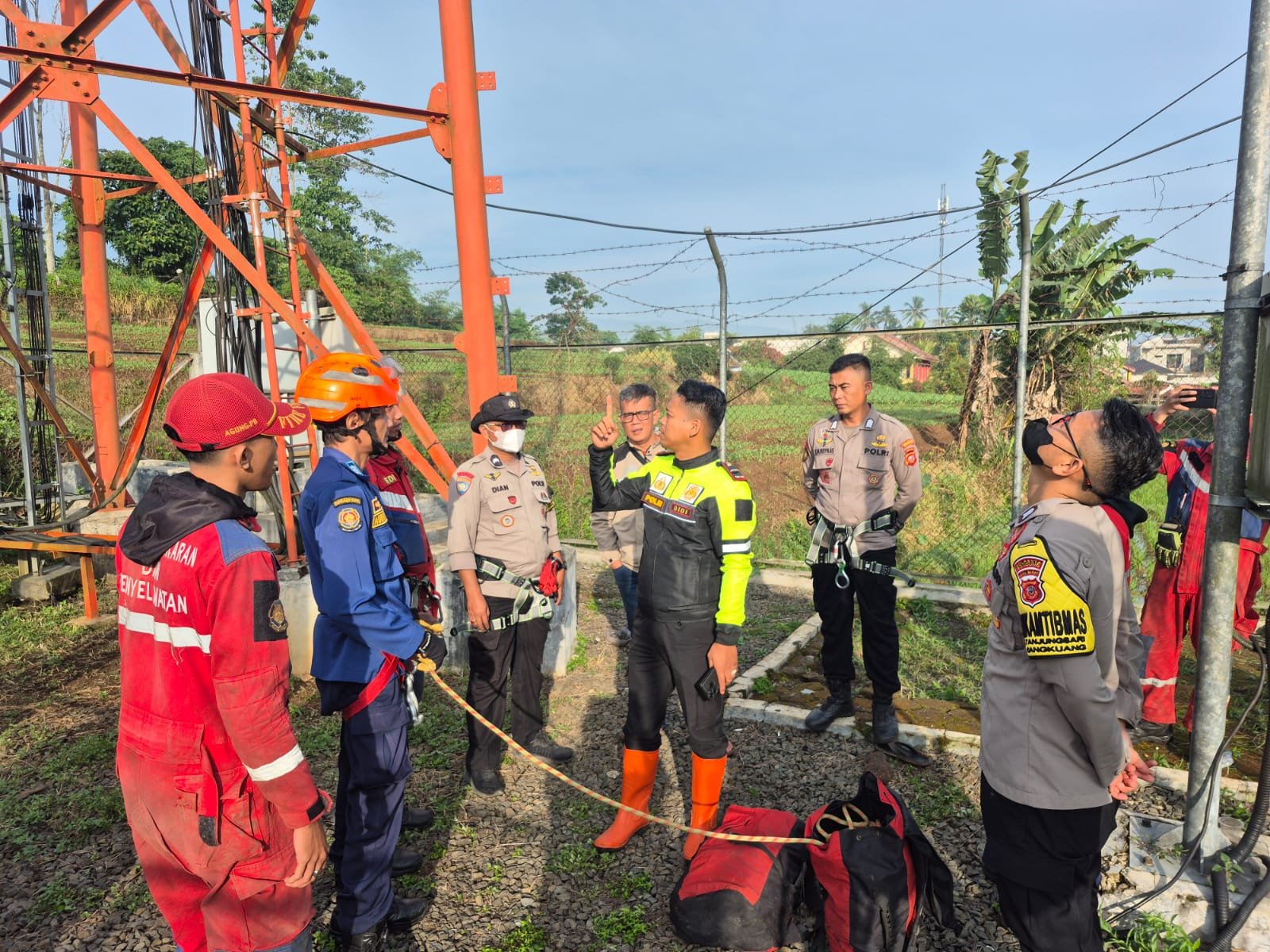 Cangkuang, Bandung — Polsek Cangkuang, Polresta Bandung, bersama Tim Rescue Pemadam Kebakaran (Damkar) Kabupaten Bandung berhasil mengevakuasi seorang remaja yang diduga hendak melompat dari menara setinggi 50 meter di Kampung Malakasari, Desa Ciluncat, Kecamatan Cangkuang, Kabupaten Bandung.