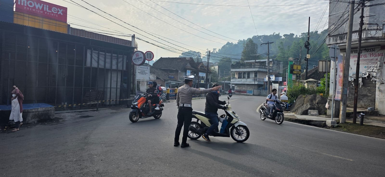 POLSEK CIWIDEY GELAR PENGATURAN LALU LINTAS PAGI UNTUK CIPTAKAN KEAMANAN,KESELAMATAN,KETERTIBAN, DAN KELANCARAN LALU LINTAS DI WILAYAH HUKUMNYA