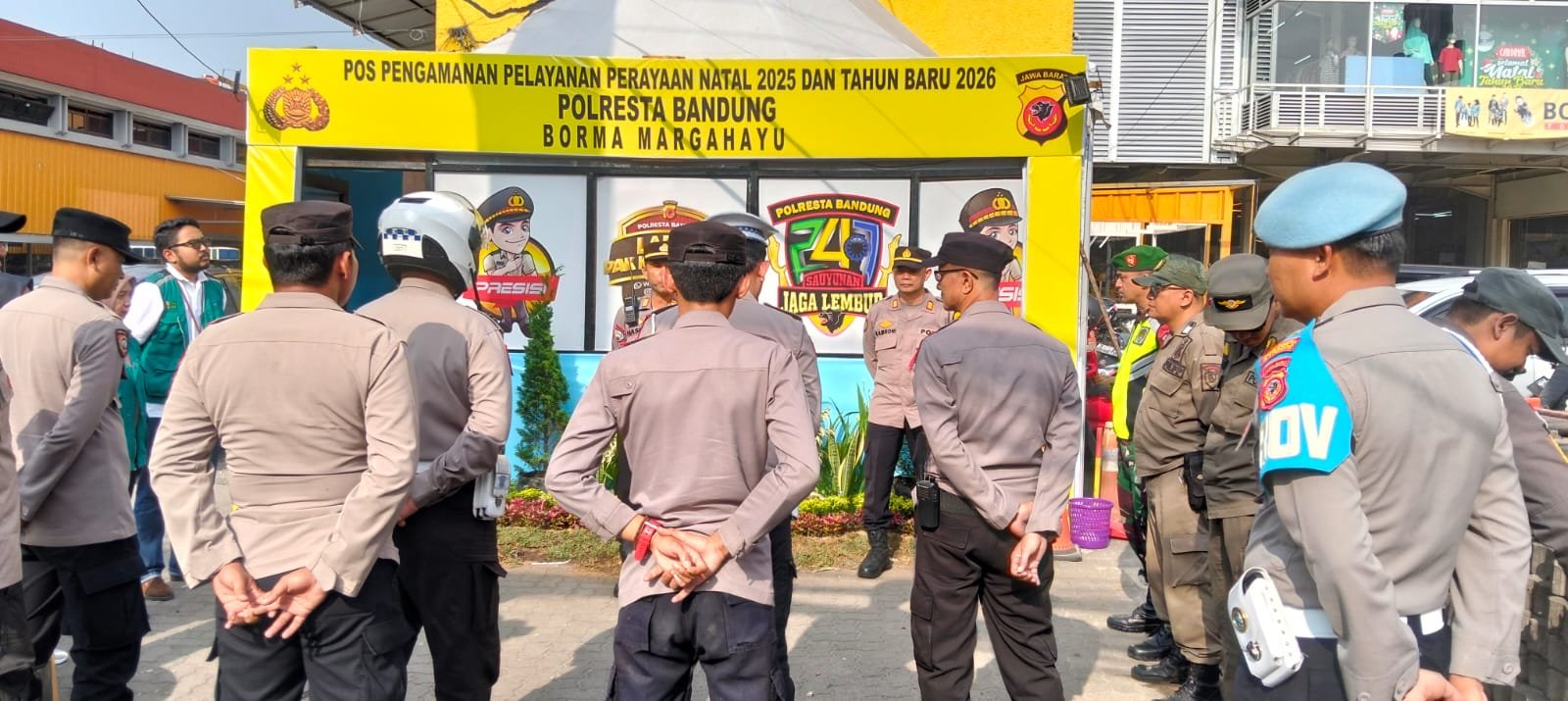 Polsek Margahayu melaksanakan Apel Gabungan Pengamanan Operasi Lilin Lodaya 2025 dalam rangka pelayanan Perayaan Natal 2025 dan Tahun Baru 2026, bertempat di Pos PAM Borma Margahayu, Jalan Kopo Sayati RW 003 Desa Sayati, Kecamatan Margahayu, Kabupaten Bandung, pada Kamis, 25 Desember 2025 pukul 08.00 WIB hingga selesai.