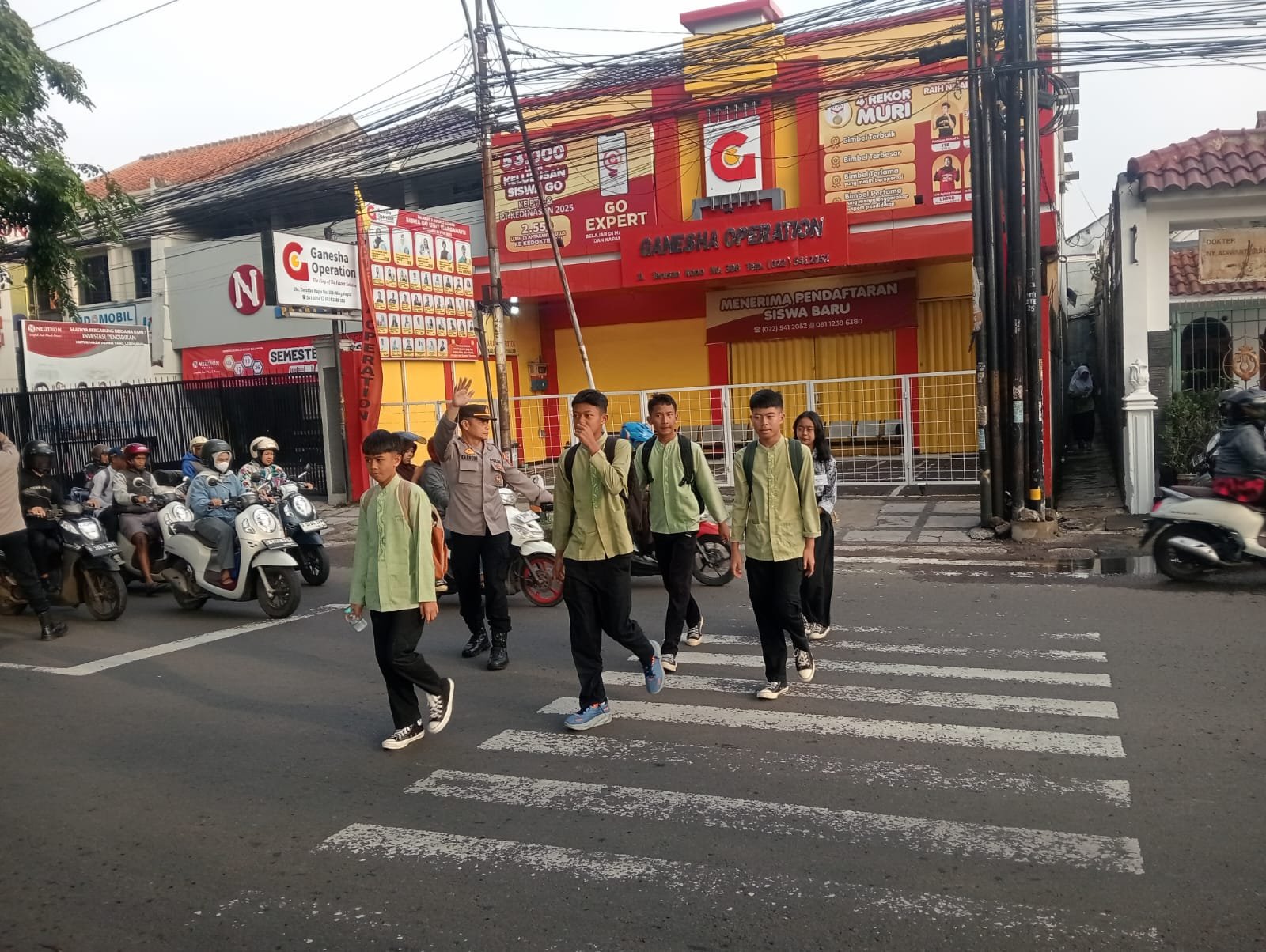 Personel melakukan pengaturan arus kendaraan untuk memastikan keamanan, ketertiban, dan kelancaran lalu lintas, terutama pada jam sibuk pagi hari yang didominasi aktivitas warga, pelajar, serta pekerja. Kehadiran petugas di lapangan membantu proses penyebrangan siswa, mengurai kepadatan, serta memberikan edukasi tertib berlalu lintas kepada pengguna jalan.