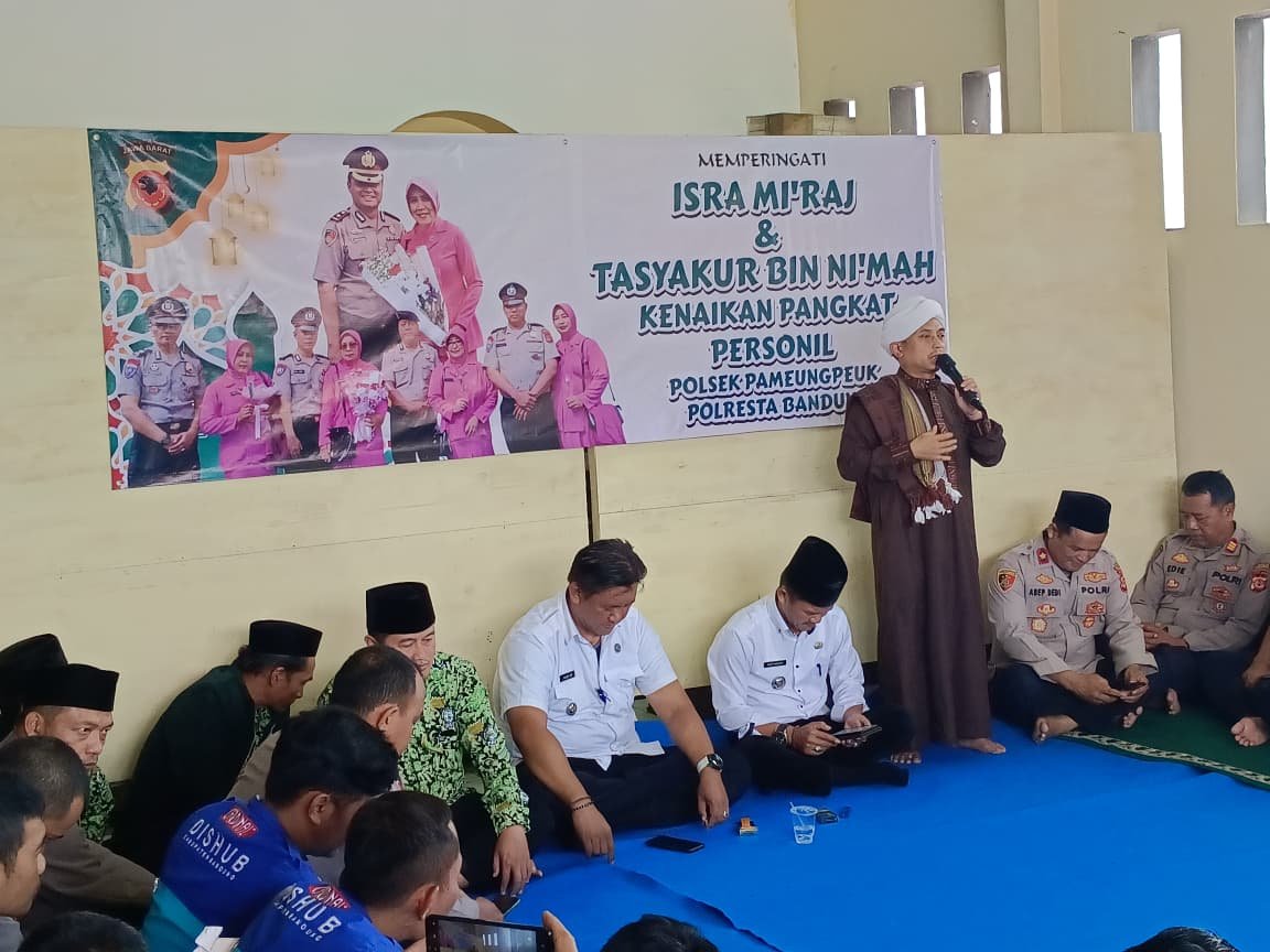 Polsek Pameungpeuk Polresta Bandung melaksanakan kegiatan Syukuran Tasyakur Bini’mah atas kenaikan pangkat personel Polsek Pameungpeuk, bertempat di Halaman Mako Polsek Pameungpeuk, Jalan Raya Banjaran–Pameungpeuk, Desa Bojongmanggu, Kecamatan Pameungpeuk, Kabupaten Bandung, pada Rabu (7/1/2026) pukul 09.30 WIB hingga 11.00 WIB.
