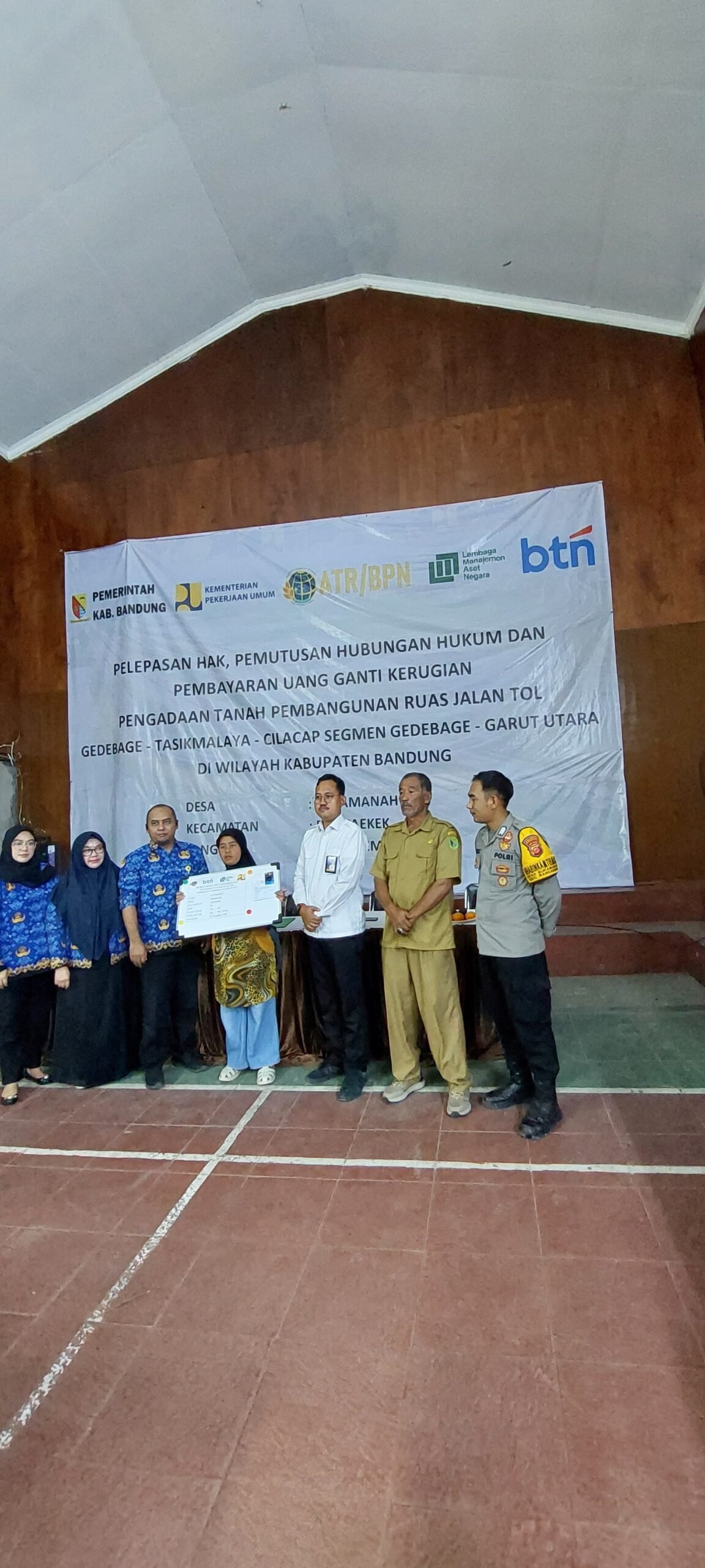 Hadir dalam kegiatan tersebut sekitar 30 orang peserta, di antaranya Kasi Pertanahan BPN Kabupaten Bandung Ibu Mira, Kepala Desa Sukamanah H. Dede Rahim, Bhabinkamtibmas Desa Sukamanah Bripka Ujang Tarsa, serta warga masyarakat yang terdampak pembangunan proyek strategis nasional tersebut.