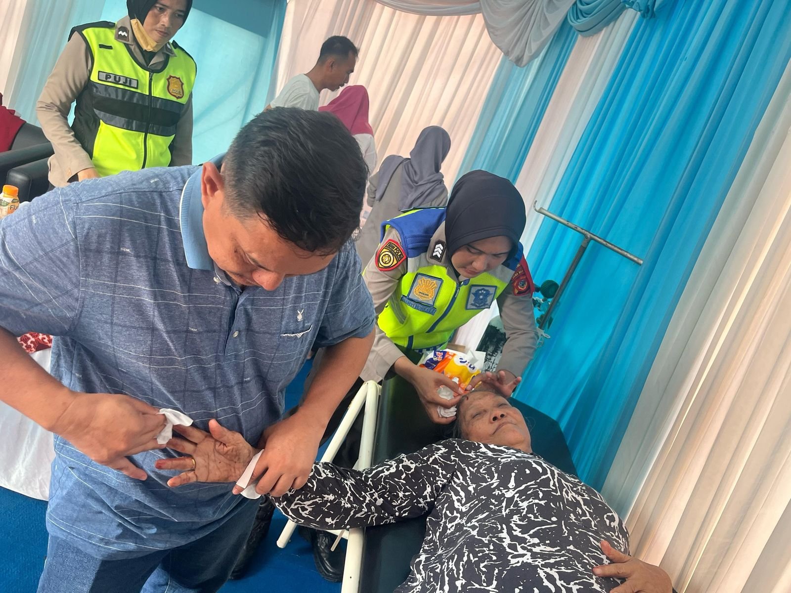 Ibu Waris segera dievakuasi ke pos kesehatan Polres Indramayu yang berada di rest area untuk mendapatkan penanganan medis.