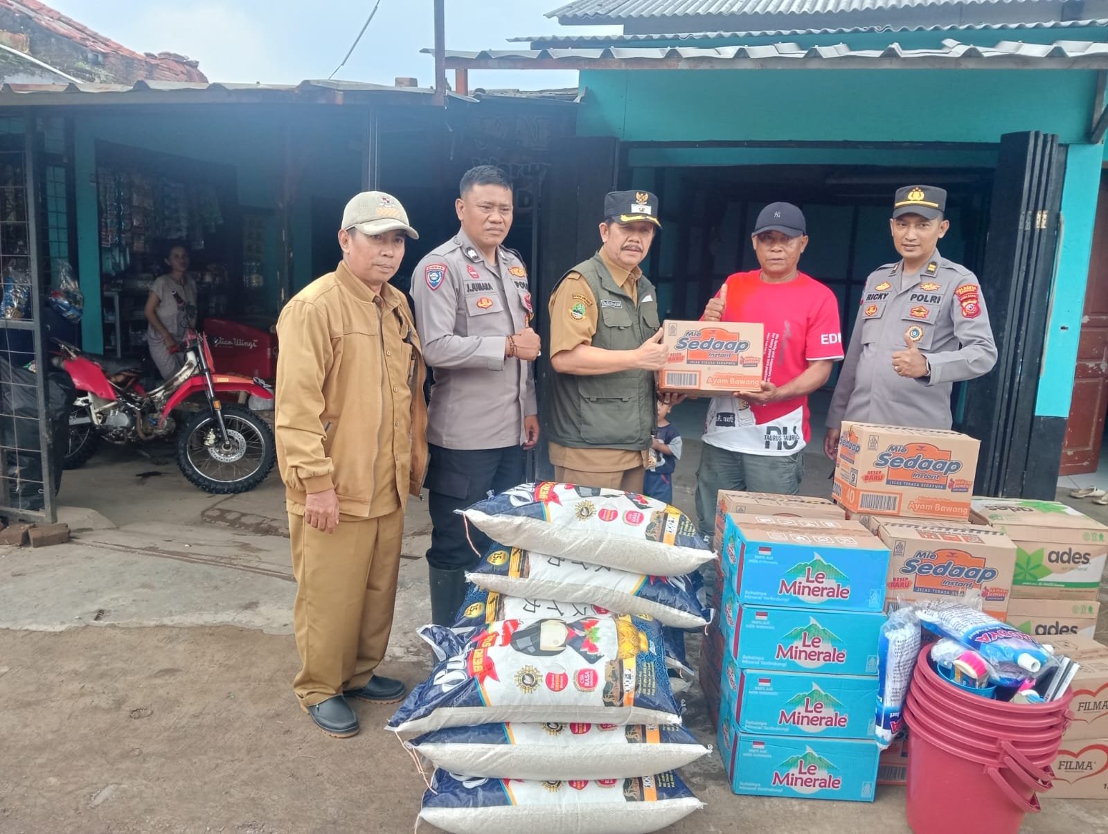 Bantuan yang diberikan kepada warga berupa kebutuhan pokok dan perlengkapan dasar, antara lain: