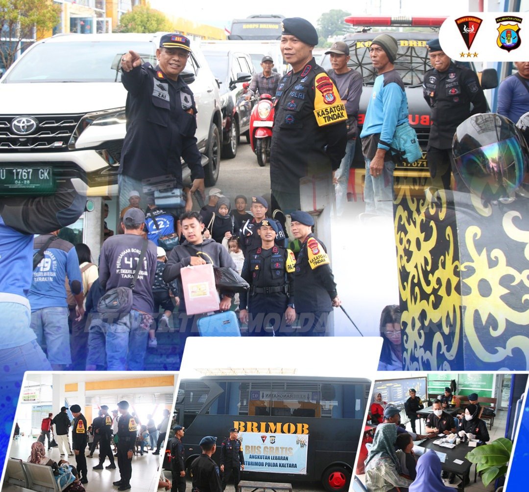 Tarakan, Mata-peristiwa.id – Dansat Brimob Polda Kalimantan Utara, Kombes Pol. Sarly Sollu, S.I.K., M.H., melaksanakan peninjauan langsung terhadap pelaksanaan program bus gratis angkutan mudik Lebaran serta layanan kesehatan gratis yang diselenggarakan oleh Satbrimob Polda Kaltara di Pelabuhan Tengkayu I SDF, Kota Tarakan, Rabu (18/03/2026).