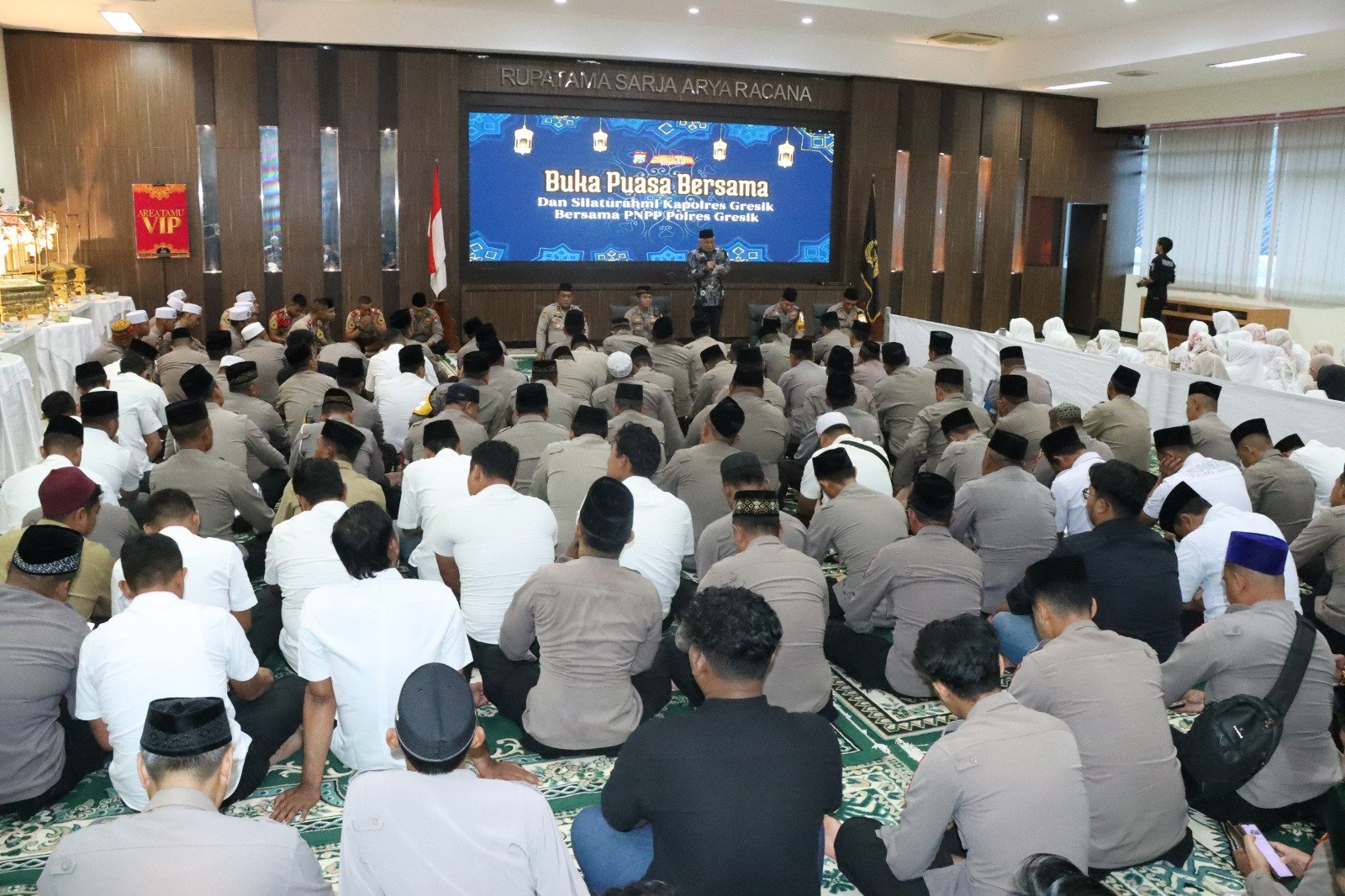 GRESIK – Dalam suasana penuh kebersamaan dan kehangatan bulan suci Ramadan 1446 H, Polres Gresik menggelar kegiatan Buka Bersama dan Silaturahmi yang berlangsung di Aula Rupatama SAR Polres Gresik, Kecamatan Kebomas, Kabupaten Gresik. Senin (03-03-2025)