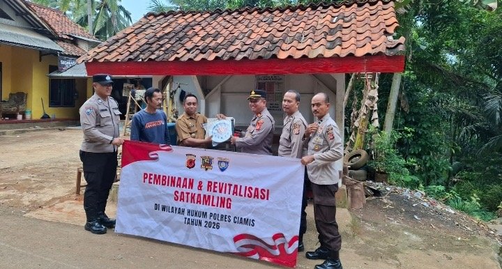 Ciamis, mata-peristiwa.id – Satuan Binmas Polres Ciamis Polda Jabar melaksanakan revitalisasi Satkamling di lingkungan masyarakat dalam rangka meningkatkan kewaspadaan dan keamanan serta ketertiban. Revitalisasi kali ini dilaksanakan ke sejumlah Satkamling di wilayah Desa Jelegong, Kecamatan Cidolog, Kabupaten Ciamis, Jawa Barat, Rabu (22/4/2026).