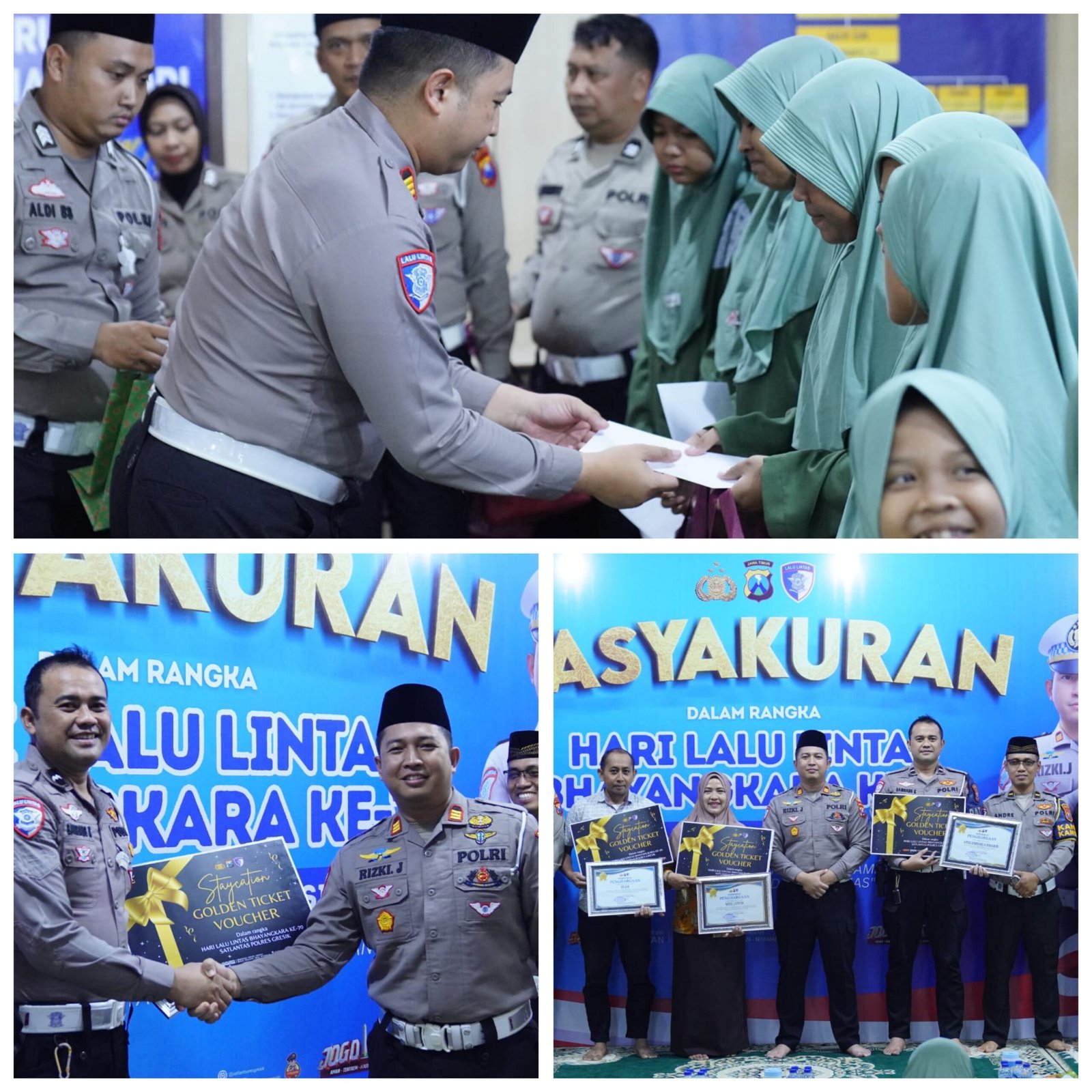 GRESIK, mataperistiwa.id – Satuan Lalu Lintas (Satlantas) Polres Gresik menggelar tasyakuran Hari Lalu Lintas Bhayangkara ke-70 pada Sabtu, 20 September 2025, bertempat di Kantor Satpas Satlantas Polres Gresik. Acara ini menjadi momentum penuh makna, tidak hanya diisi doa bersama, tetapi juga ditandai dengan pemberian penghargaan (reward) kepada anggota berprestasi serta santunan bagi anak yatim.