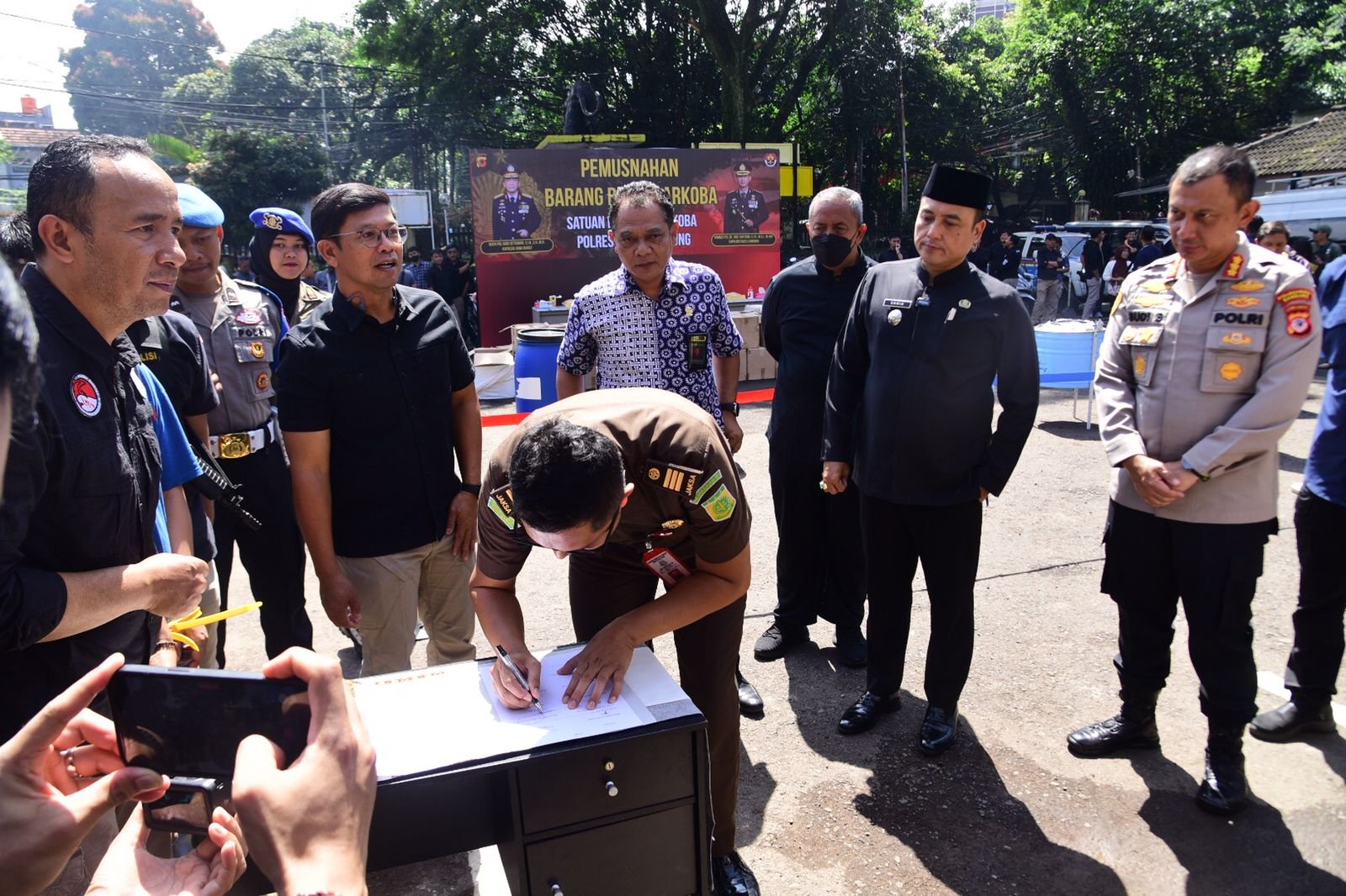 Dalam sambutannya, Kapolrestabes Bandung Kombes Pol Dr. Budi Sartono menegaskan bahwa kegiatan pemusnahan ini merupakan bentuk komitmen bersama dalam memberantas peredaran dan penyalahgunaan narkoba di Kota Bandung.