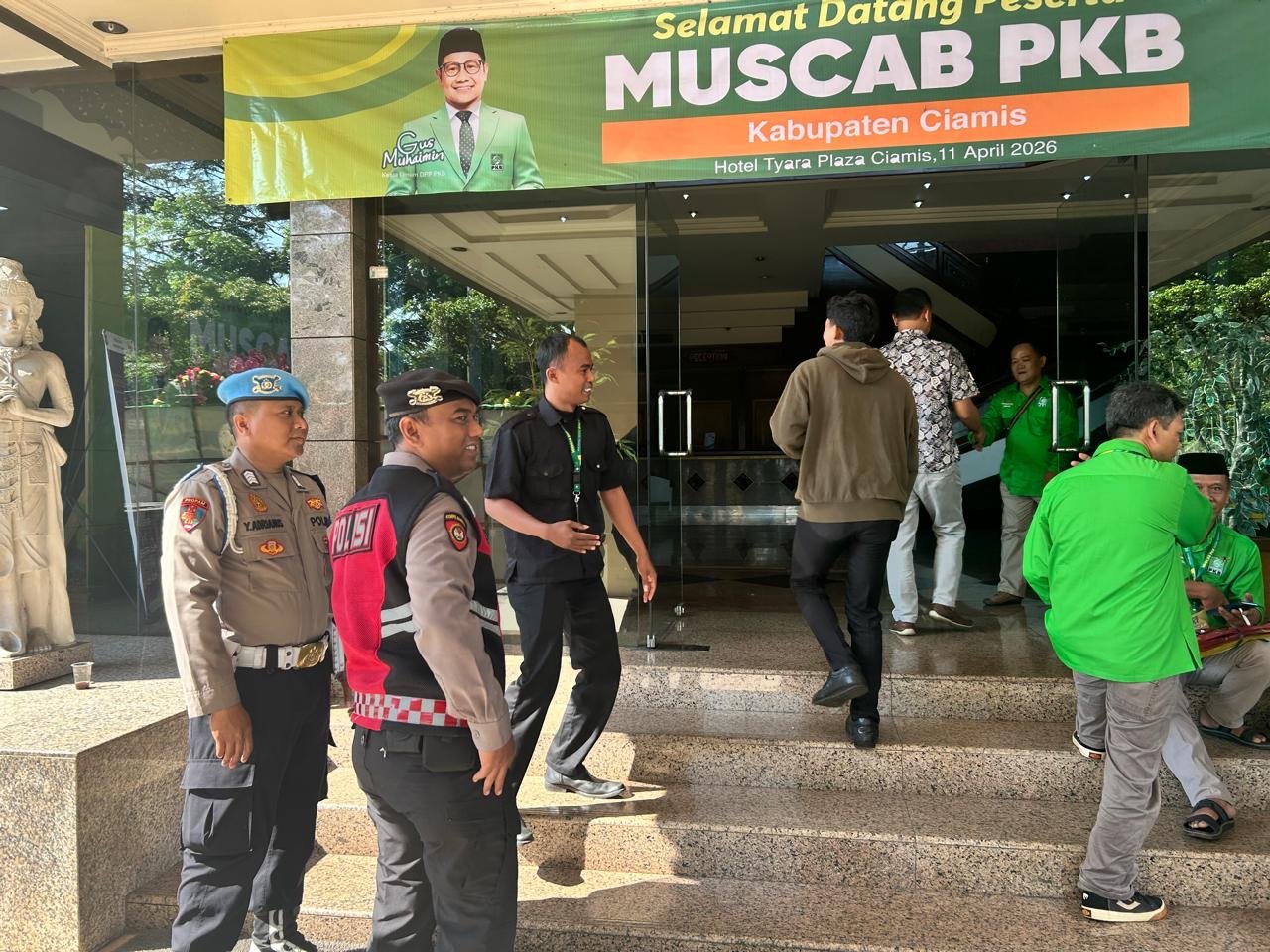 Ciamis, mataperistiwa.id – Satuan Samapta Polres Ciamis Polda Jabar turut bersiaga mengamankan gelaran Musyawarah Cabang (Muscab) Partai Kebangkitan Bangsa (PKB) Kabupaten Ciamis. Para personel bersiaga di kawasan Hotel Tyara, Jalan Jenderal Sudirman, Ciamis, Kabupaten Ciamis, Jawa Barat, Sabtu, 11 April 2026, kemarin.