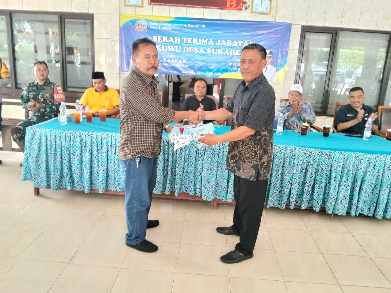 “Saya mengucapkan terima kasih yang sebesar-besarnya kepada Bapak Taspan atas dedikasi dan pengabdiannya selama memimpin Desa Sukareja. Tidak sedikit capaian pembangunan dan pelayanan kepada masyarakat yang telah dirasakan manfaatnya,” ujar Ade Sukma Wibowo, Jumat (13/02/2026) saat sertijab yang belangsung di Kantor Desa setempat.