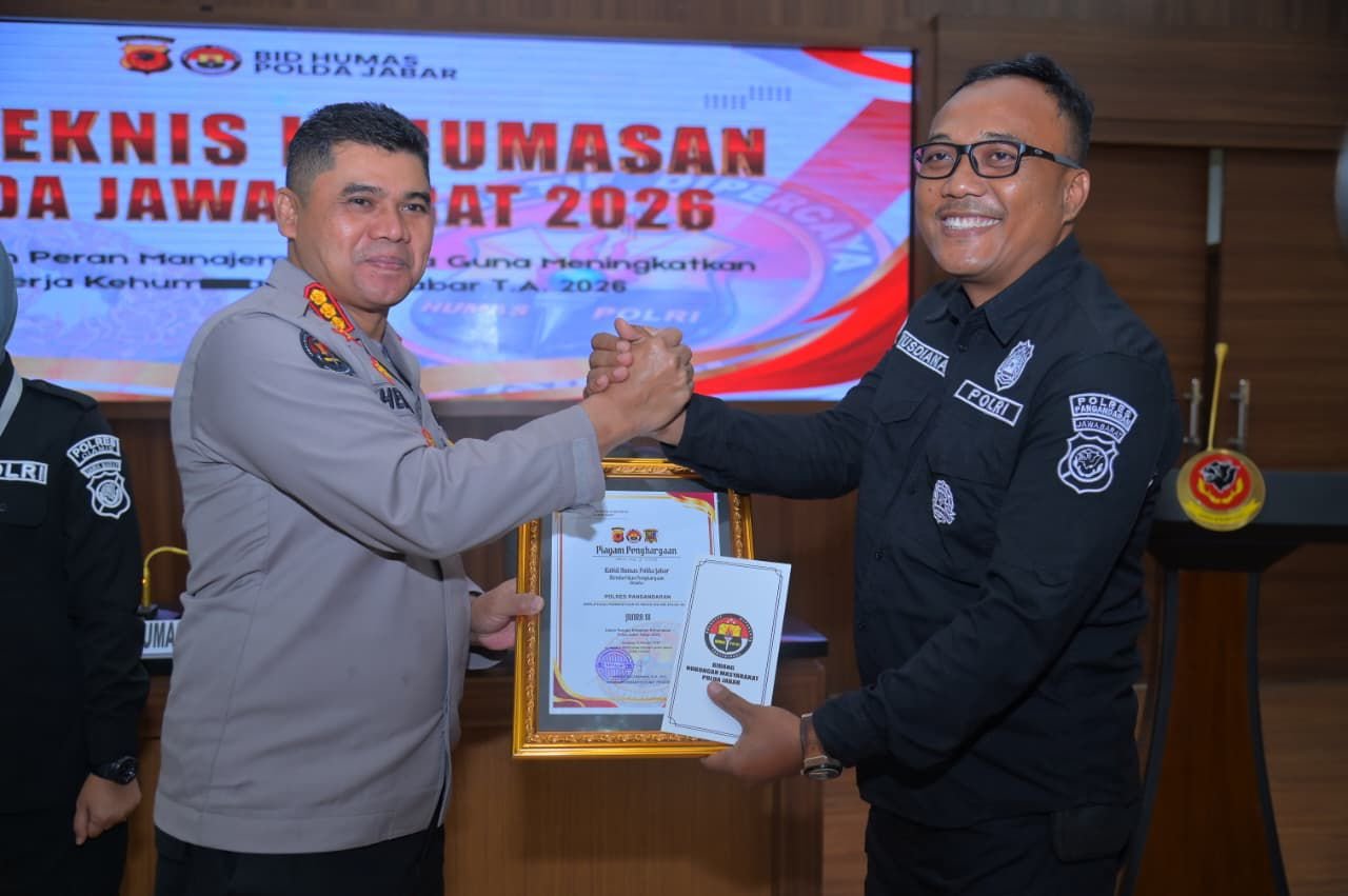 Penyerahan penghargaan dilakukan secara langsung oleh Kabid Humas Polda Jabar, Hendra Rochmawan, S.I.K., M.H yang menyampaikan apresiasi atas dedikasi dan komitmen jajaran Polres Pangandaran dalam mendukung keterbukaan informasi publik serta penguatan citra institusi Polri di ruang digital.