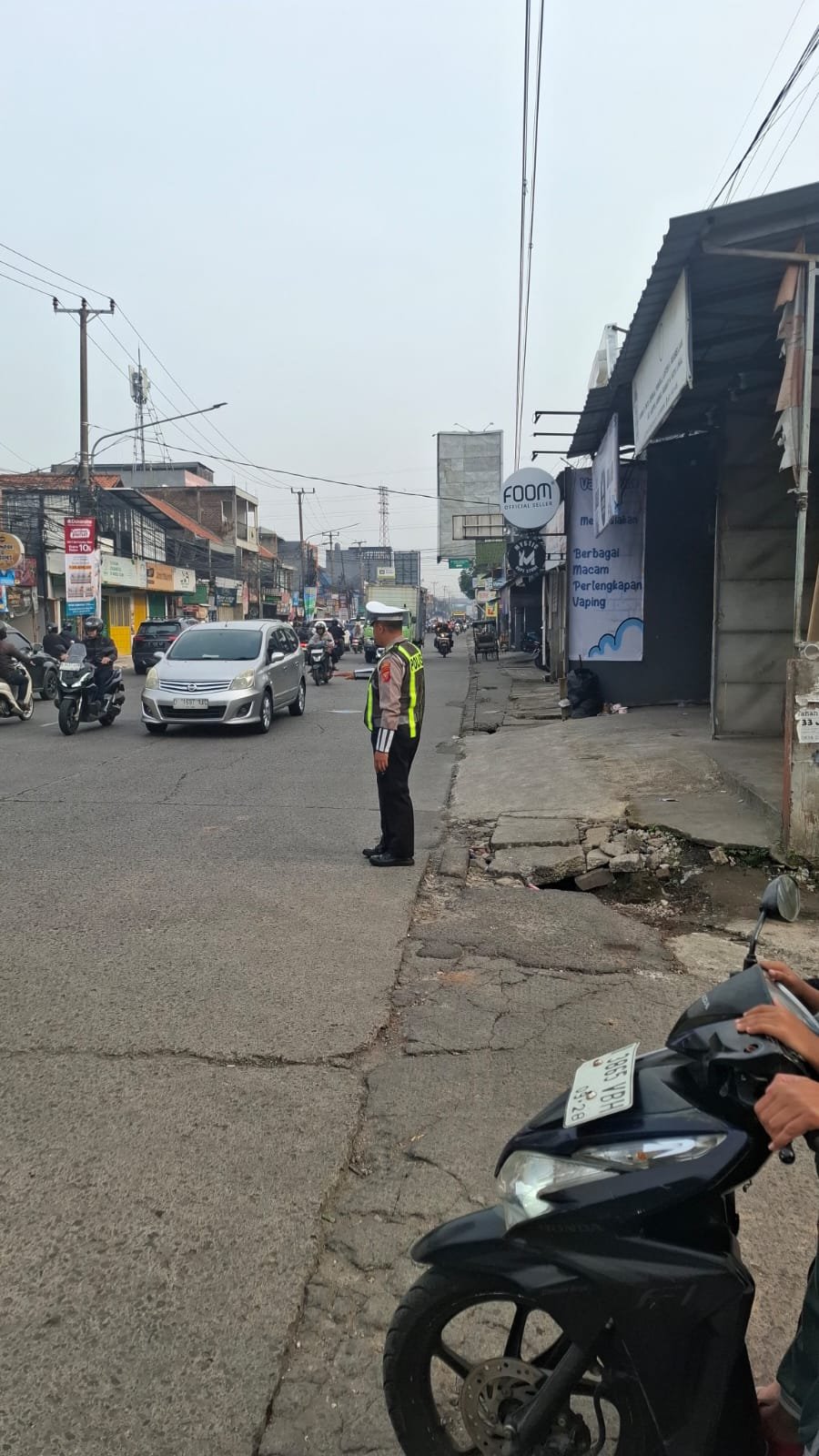 Sinar Pagi’ Lantas Bojongsoang: Aiptu Syahrial Sigap Urai Kepadatan Pintu Masuk Bandung di Simpang Ciganitri