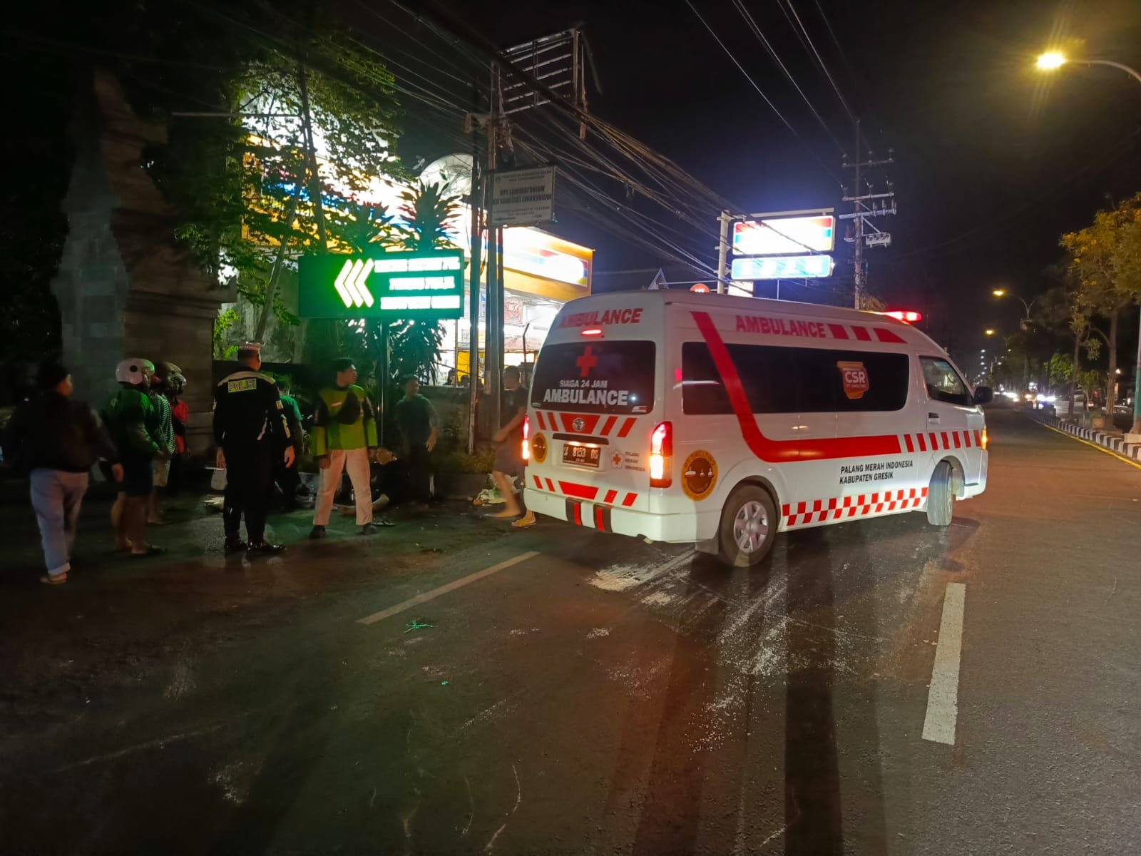 Melihat kondisi korban, sejumlah ojol dan masyarakat sekitar langsung bergerak cepat memberikan bantuan awal. Dengan sinergi bersama personel kepolisian, korban berhasil dievakuasi sebelum akhirnya dibawa menggunakan ambulans PMI menuju RS Semen Gresik untuk mendapatkan perawatan medis.