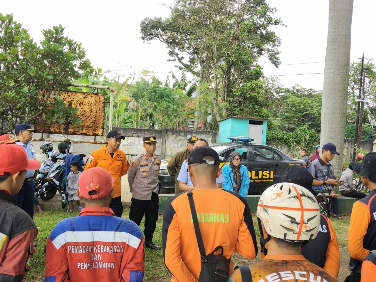Kapolsek Margahayu AKP Hasbi Ask Sidiqie didampingi Danramil Margahayu, Camat Margahayu, Kanit Intelkam, Kades Sukamenak, Basarnas KKP Bandung, serta unsur Lanud Sulaiman langsung mendatangi lokasi begitu menerima laporan.