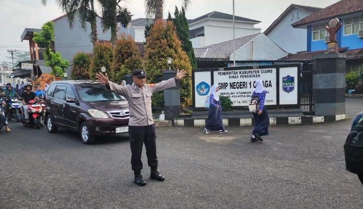 Kegiatan yang dimulai sekitar pukul 06.30 WIB tersebut dilaksanakan oleh personel Polsek Cisaga, yakni Aiptu Kulup Nugroho dan Bripka Ruslan Hadiyatna, dengan fokus pengamanan di area sekolah yang menjadi titik aktivitas masyarakat pada pagi hari.