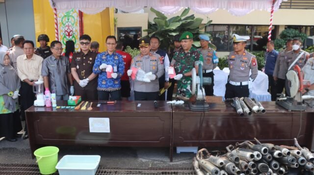 Menjelang Akhir Tahun 2025 Polres Kotim Musnahkan 599,64 Gram Sabu, dan 623 Knalpot Brong