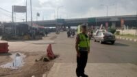 Anggota Unit Lantas Polsek Cileunyi Atur Lalu Lintas Sore di Pertigaan Panyawungan Cileunyi, Antisipasi Kepadatan Kendaraan