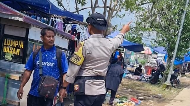 Cegah Curanmor dan Kemacetan, Bhabinkamtibmas Desa Ciluncat Tertibkan Kawasan Pasar Senggol Parken