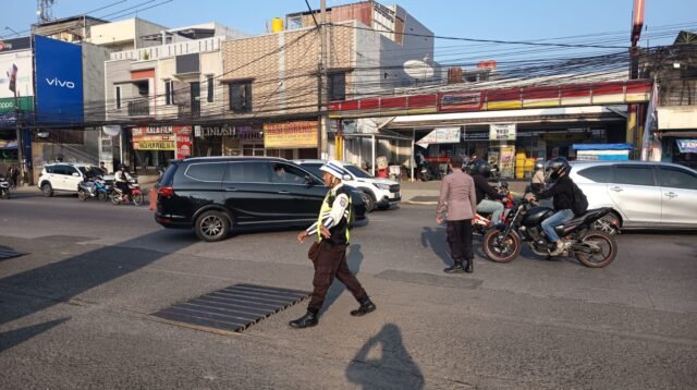 Optimalkan Pelayanan Pagi, Unit Samapta Polsek Bojongsoang Siaga Atur Lalu Lintas di Simpang Podomoro Park