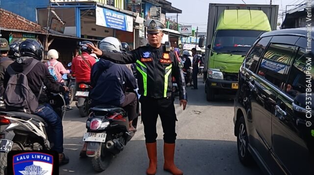Pelayanan di Pertigaan Jembatan Rancamanyar, Polsek Baleendah Atur Lalu Lintas