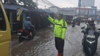 Arus Lalin Terganggu Akibat Genangan, Polsek Dayeuhkolot Lakukan Pengamanan