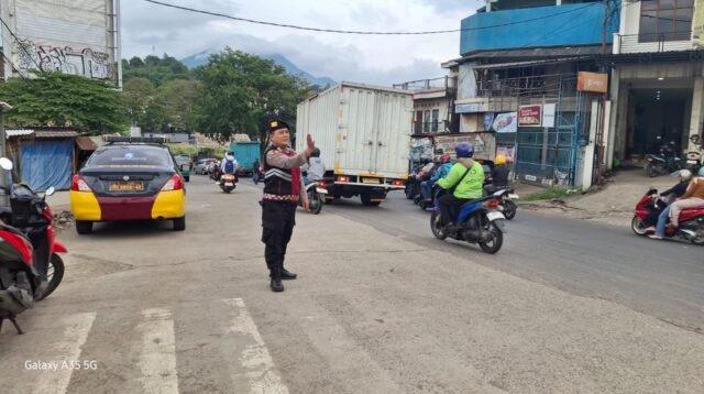 Antisipasi Macet Jam Pulang Kerja, Samapta Polsek Cileunyi Lakukan Pengaturan Lalu Lintas di Pasar Sehat