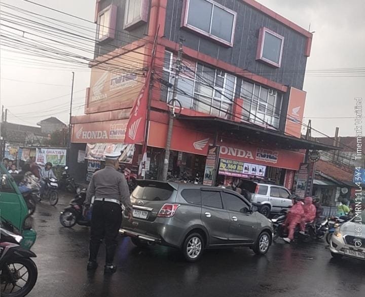 Polresta Bandung, – Guna memberikan pelayanan prima kepada masyarakat dipagi hari meski sudah di guyur hujan, Anggota Unit Lantas Polsek Cicalengka melakukan pengaturan lalu lintas di Depan Alun alun wilayah Hukum Polsek Cicalengka, Polresta Bandung. Jumat, 10 Oktober 2025.