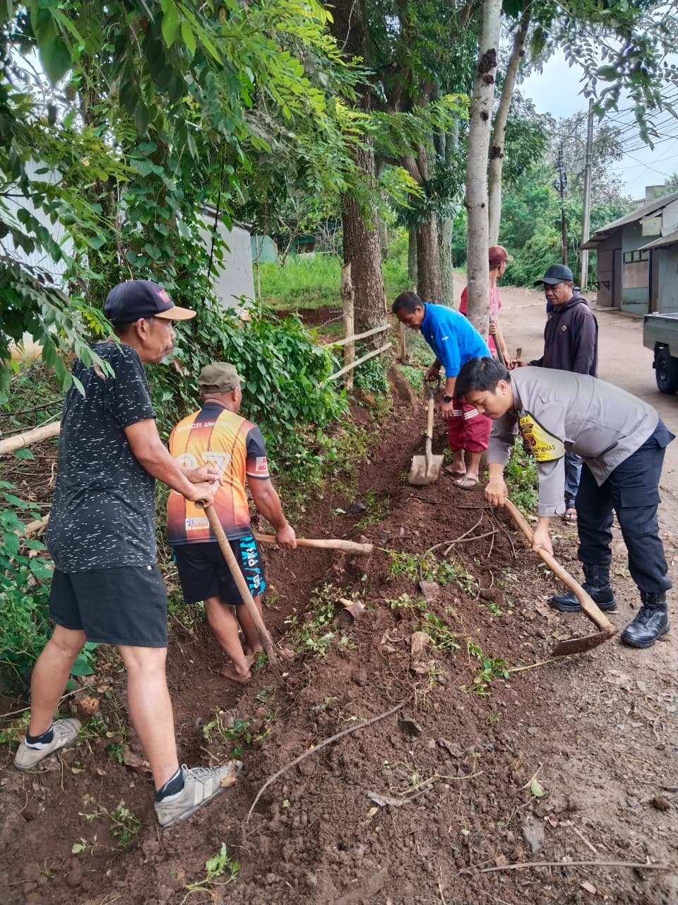 Temui Masyarakat Yang Sedang Gotong Royong : Bhabinkamtibmas Polsek Cimenyan Polresta Bandung Berikan Himbauan Kamtibmas
