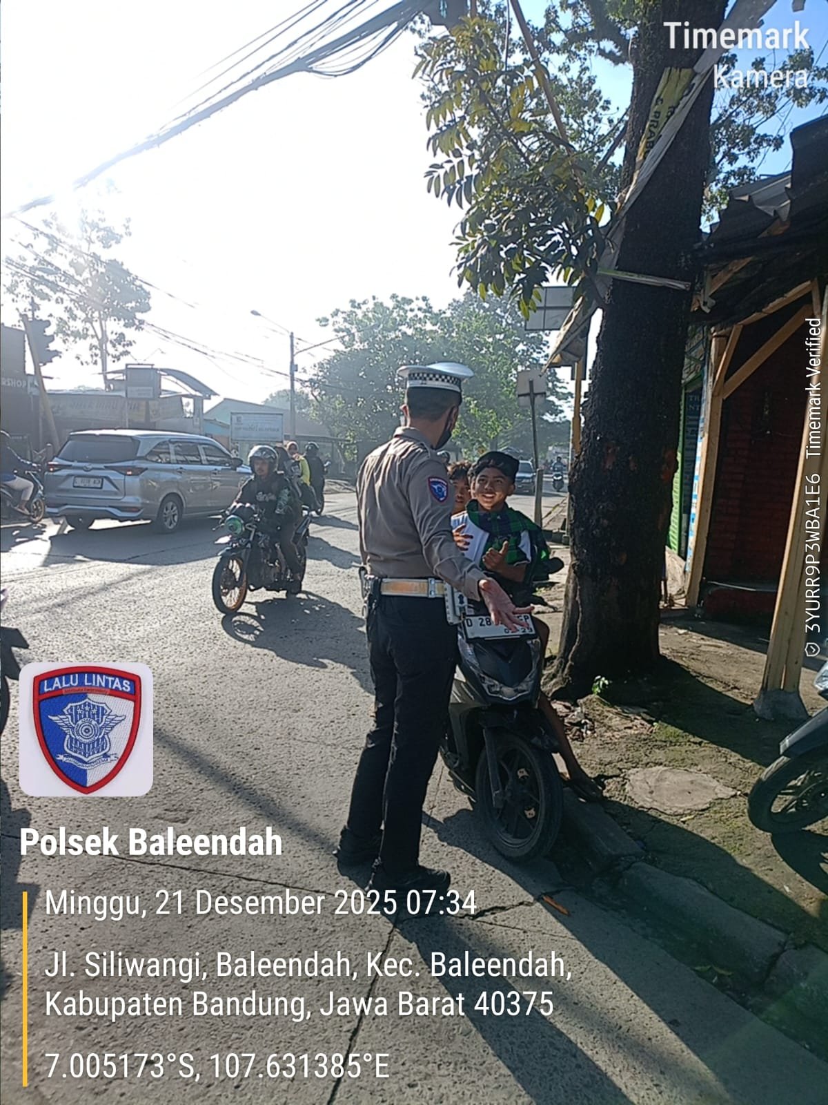 Baleendah – (22/12/2025) Dalam rangka Operasi Lilin Lodaya 2025/2026, Unit Lalu Lintas Polsek Baleendah melaksanakan kegiatan preventif dengan menyampaikan imbauan tertib berlalu lintas kepada para pengendara, khususnya remaja, di kawasan Simpang Siliwangi, Kecamatan Baleendah, Kabupaten Bandung.