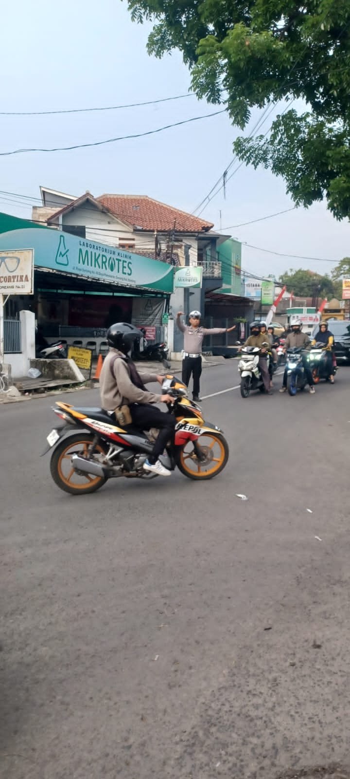 Petugas Lantas turut membantu menyeberangkan siswa, guru, serta orang tua yang mengantar, mengingat ruas jalan di depan sekolah kerap dipadati kendaraan pada pagi hari. Selain itu, personel memberikan imbauan kepada pengendara agar tetap tertib, mengurangi kecepatan, serta mengutamakan keselamatan pejalan kaki, terutama anak-anak.
