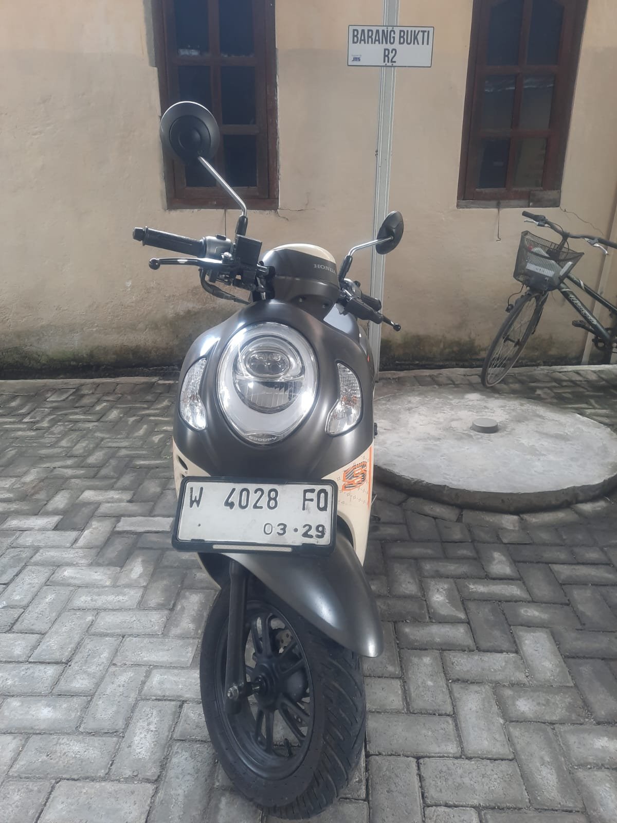 Identitas pelaku berinisial F (28), warga Timur Jarat, Desa Alang-Alang, Kecamatan Tragah, Kabupaten Bangkalan. Barang bukti yang diamankan, satu unit Honda Scoopy tahun 2024, Nopol W-4028-FQ (beserta STNK). Rekaman CCTV saat terduga hendak melakukan pencurian. Kunci letter T yang ditajamkan dan kunci/pembuka magnet kontak.Pakaian yang dipakai pelaku (baju hijau & merah), topi hitam, dan tas pinggang tempat menyimpan alat.
