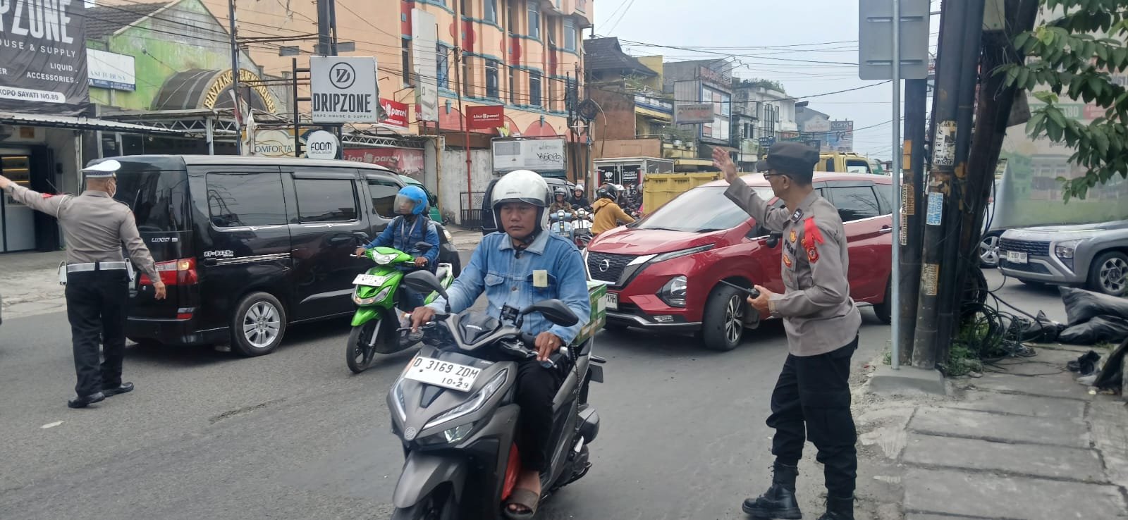 Polsek Margahayu melaksanakan kegiatan pelayanan masyarakat (Yanmas) berupa pengaturan lalu lintas (gatur) siang hari di wilayah hukum Polsek